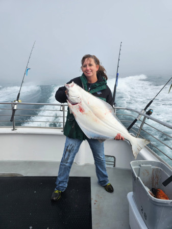 Had another nice day on the water today with really good fishing for the rockfish and Lingcod. On the Sunrise this morning one of our customers really went home extra happy with this really big Halibut.