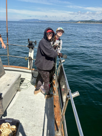 The salmon. as we predicted really picked up on Thursday with fish probably coming up the line heading north and they were pretty much right out front of Depoe Bay this morning. We had great catches today. Bottom fishing was really good with mostly limit catches on the rockfish and quite a few Lingcod today on the filet tables. Crabbing remains really good.